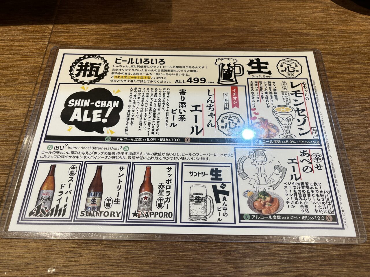 特製出汁で煮込み、背脂をふりかけたしんちゃんだけの逸品「大鍋煮込み」、こちらは3点盛りです。おでんよりもこってり系、トロトロに煮込まれた具材からジュワっと旨みが溢れ出して心も体も温まる一品でした。つまみにんにく餃子は国産キャベツと薄皮が特徴の一口サイズのつまみ餃子ににんにくをプラス。ガツンとパンチが効いてお酒が進みます。こちらのお店にはつきだしは無く、なんと無料サービスの食品もあります。鬼おろしポン酢は辛さはなく箸休め、口直しに最適です。自家製肉みそは冷やしピーマンや餃子の味付けに。温かい鶏スープ、にんにくも無料のサービスです。この値上げの時代にこのサービス精神はスゴイ。たくさん飲食して応援したくなりますね。2階にはトイレと喫煙ルームが有りました。どれもリーズナブルなメニューばかりなので、仲間たちとワイワイ集まるのも良し。お一人でサク飲みも良し。活気があり元気になれるお店です。