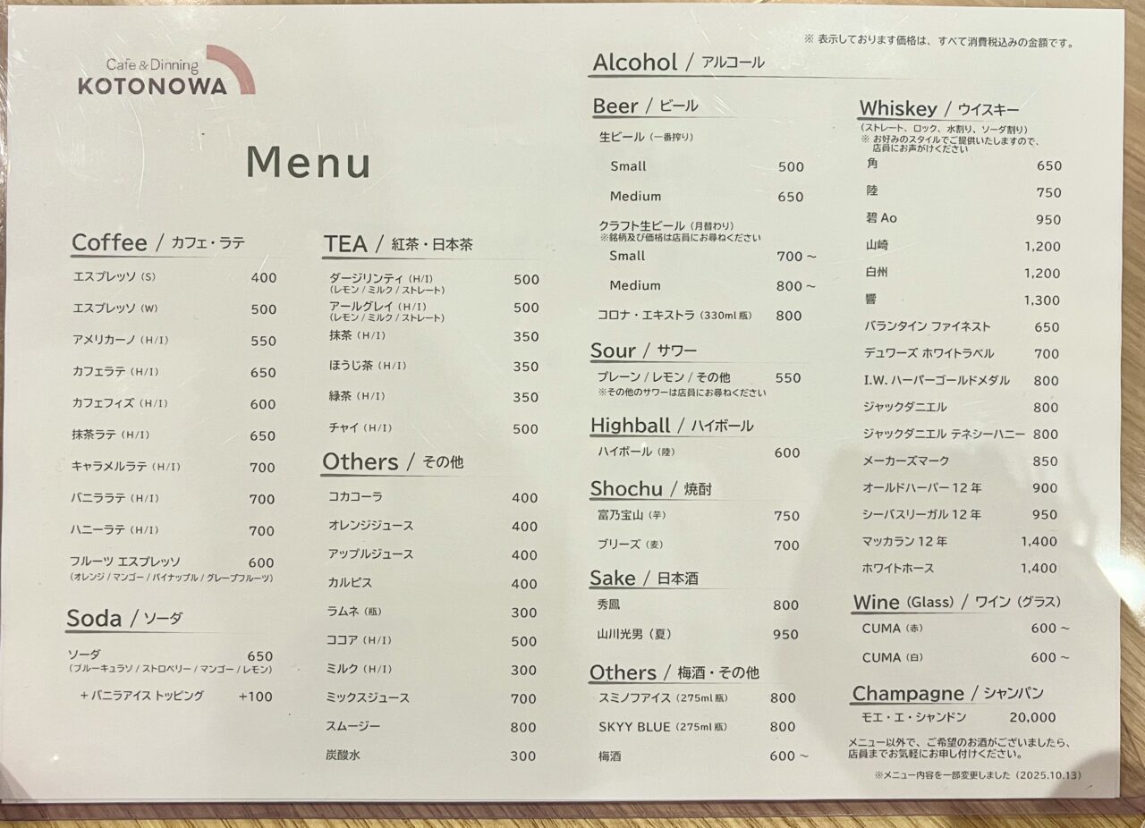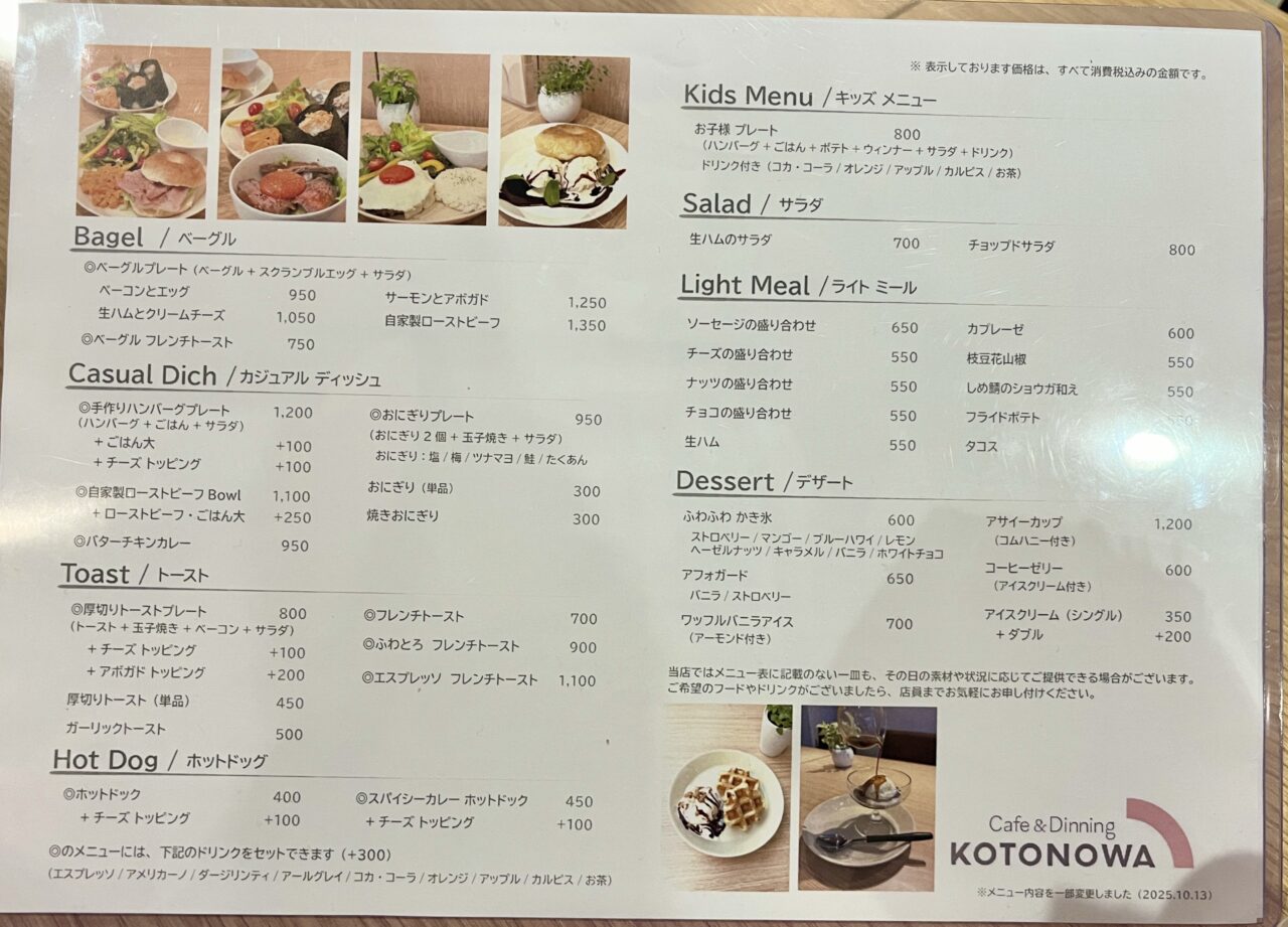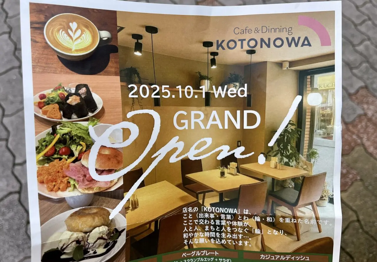 2025年10月1日(水)聖天通商店街に「Cafe & Dinning KOTONOWA」がオープンしました!こちらはおすすめメニューのベーグルをはじめプレート料理やこだわりのエスプレッソ、カフェメニューだけでなくアルコールも揃うお店です。