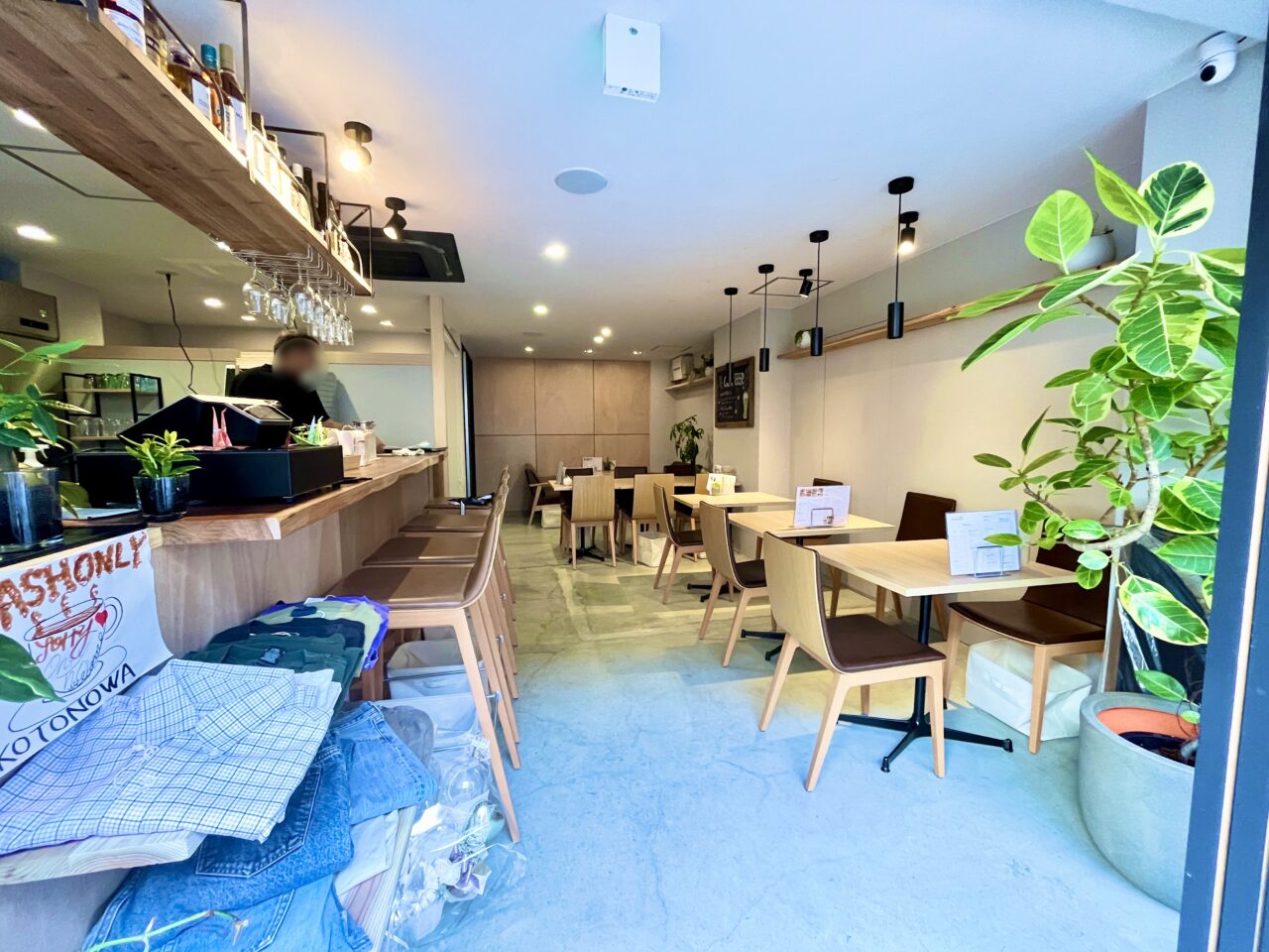 ナチュラルカラーで統一された店内はお洒落な雰囲気、開放感がありふらりと立ち寄りたくなる気さくさがあります。10:00~23:00(L.O.22:30)の営業で定休日は火曜日。