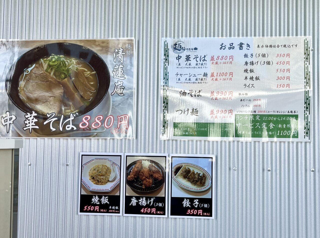 中華そばの他に油そば、つけ麺、餃子、から揚げ、焼飯もあるようです。ランチタイムには中華そば、ライス、から揚げがセットになったサービス定食も数量限定で登場します。