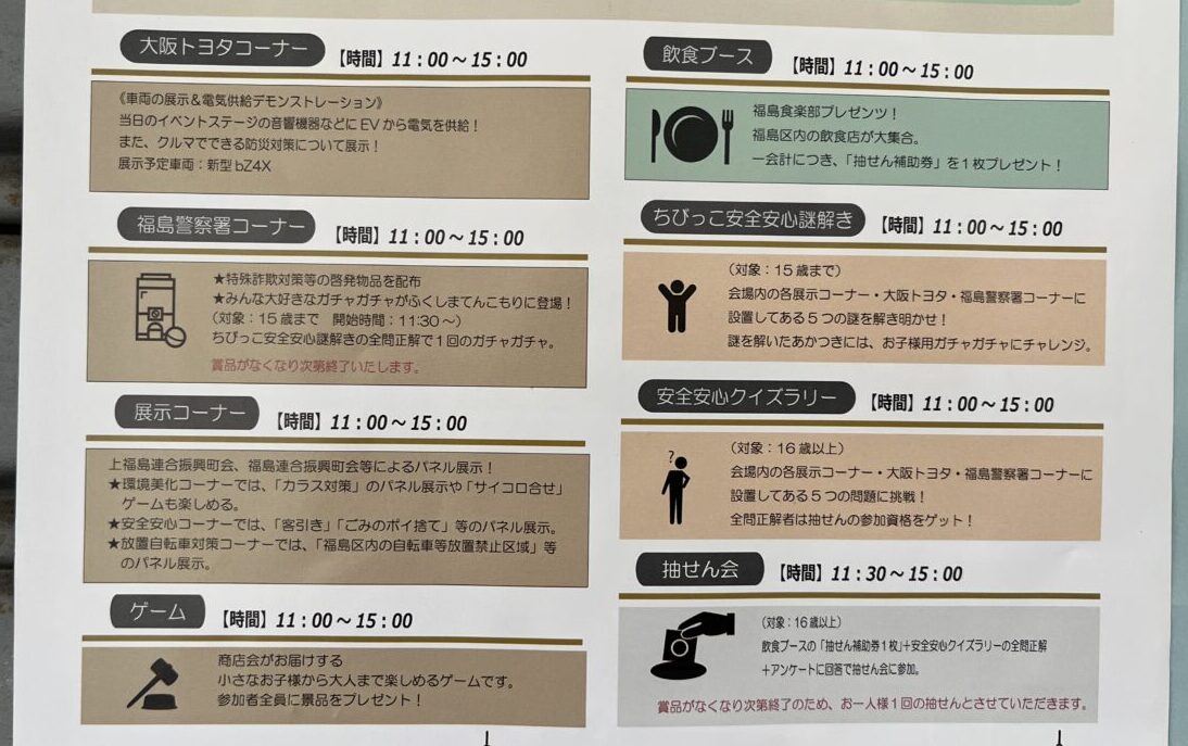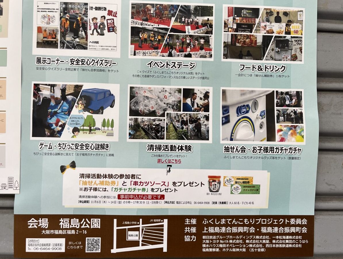 まちづくりに関する様々なブースが登場します。福島区の生活について楽しく考える機会になりそうですね。