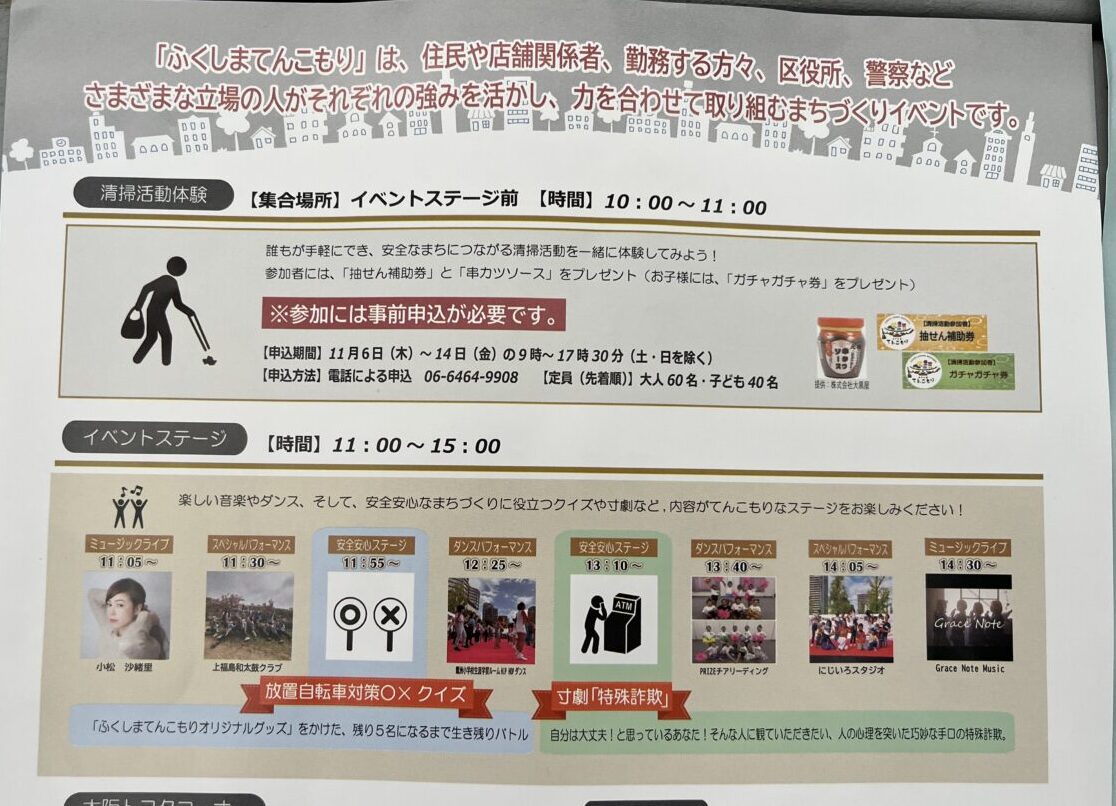 【大阪市福島区】11月16日(日)は福島公園でまちづくりイベント「ふくしまてんこもり2025」が開催です!