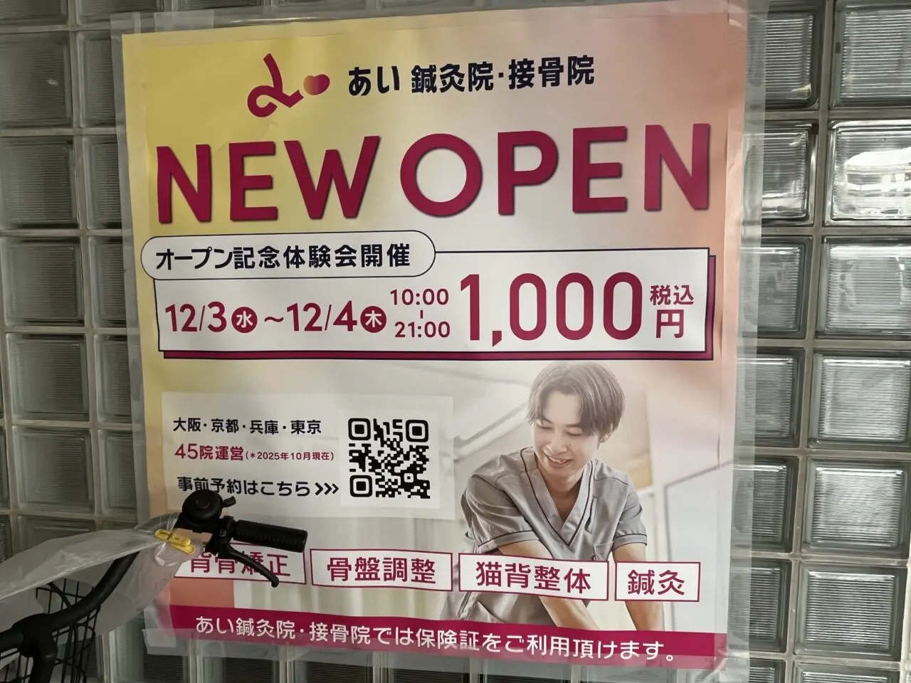 オープンを記念して、12月3日(水)と4日(木)の2日間、初回施術体験を特別価格の1,000円で提供するとのこと。