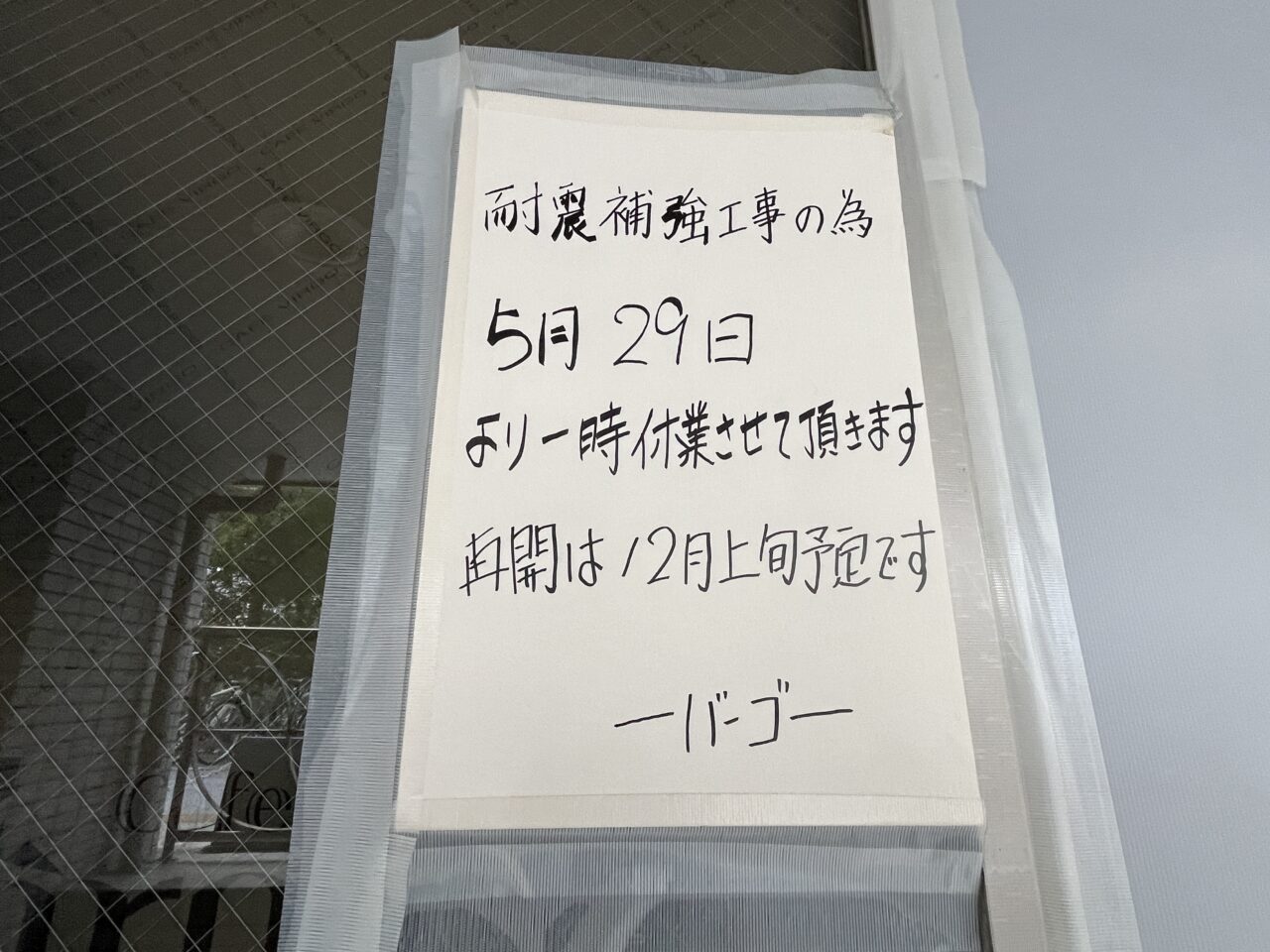 5月29日(木)から休業しているカレー店「Virgo(バーゴ)」店頭の案内は以前と変わらず”再開は12月上旬予定”とありました。