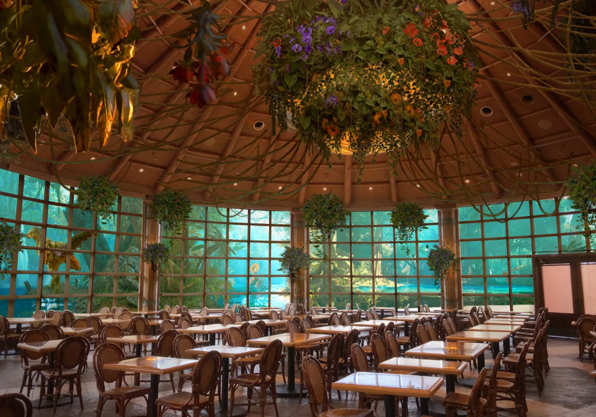 ジュラシック・パークのロストワールド・レストランにて、緑豊かな緋の森にある“モリバーのアジト”を再現した本レストランでは、にぎやかな獣人族モリバーや、ハンターの頼れる相棒オトモアイルーが焚き火を囲んで出迎えてくれます。ゲストはハンターとして参加した“モリバーの宴”で、こんがり焼けた焚き火料理にかぶりつき、力がみなぎるような体験を満喫することができます。