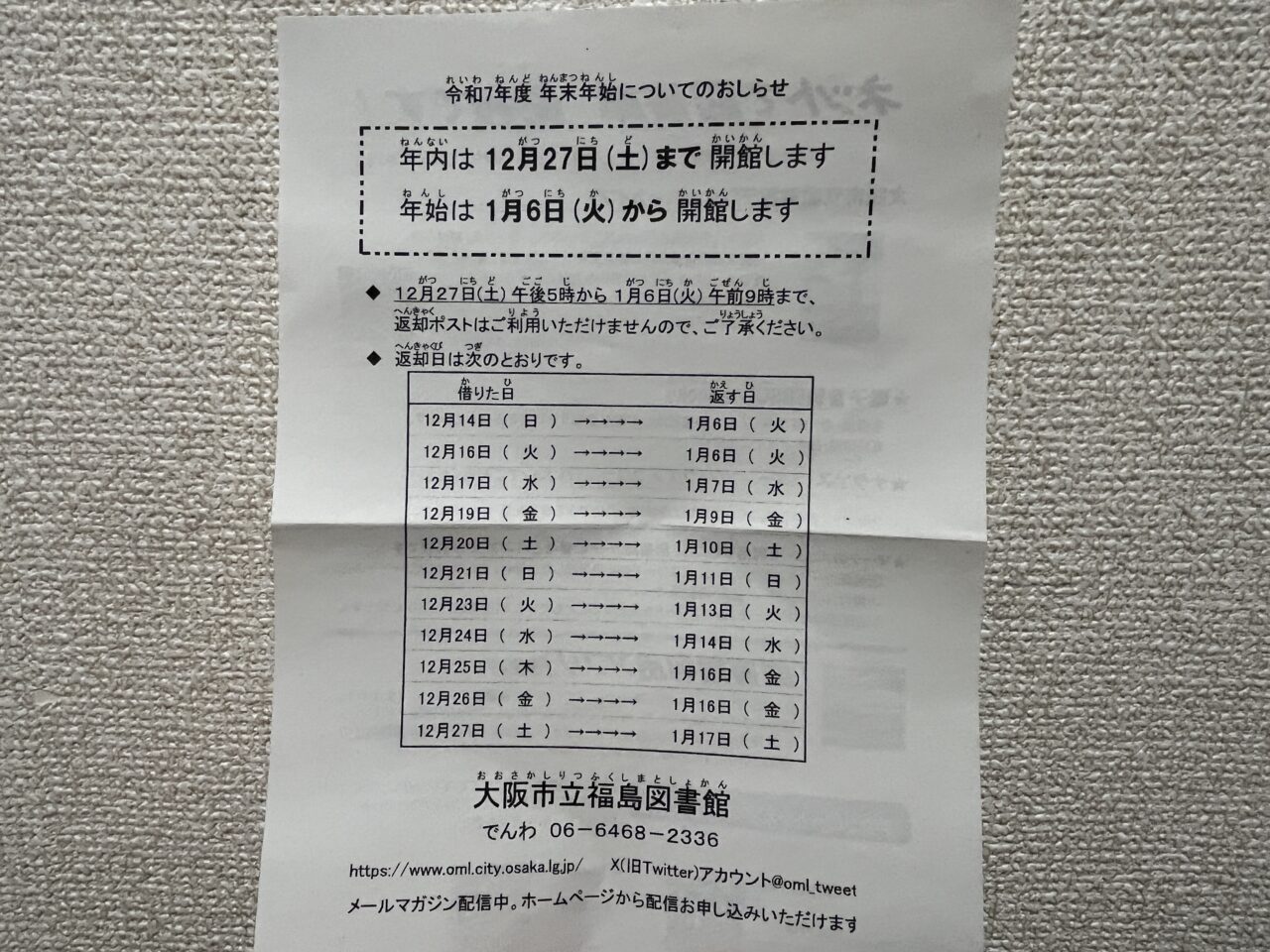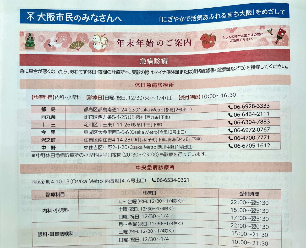 【大阪市福島区・此花区】年末年始の休業・休日・夜間急病診療所・ごみ収集などについて