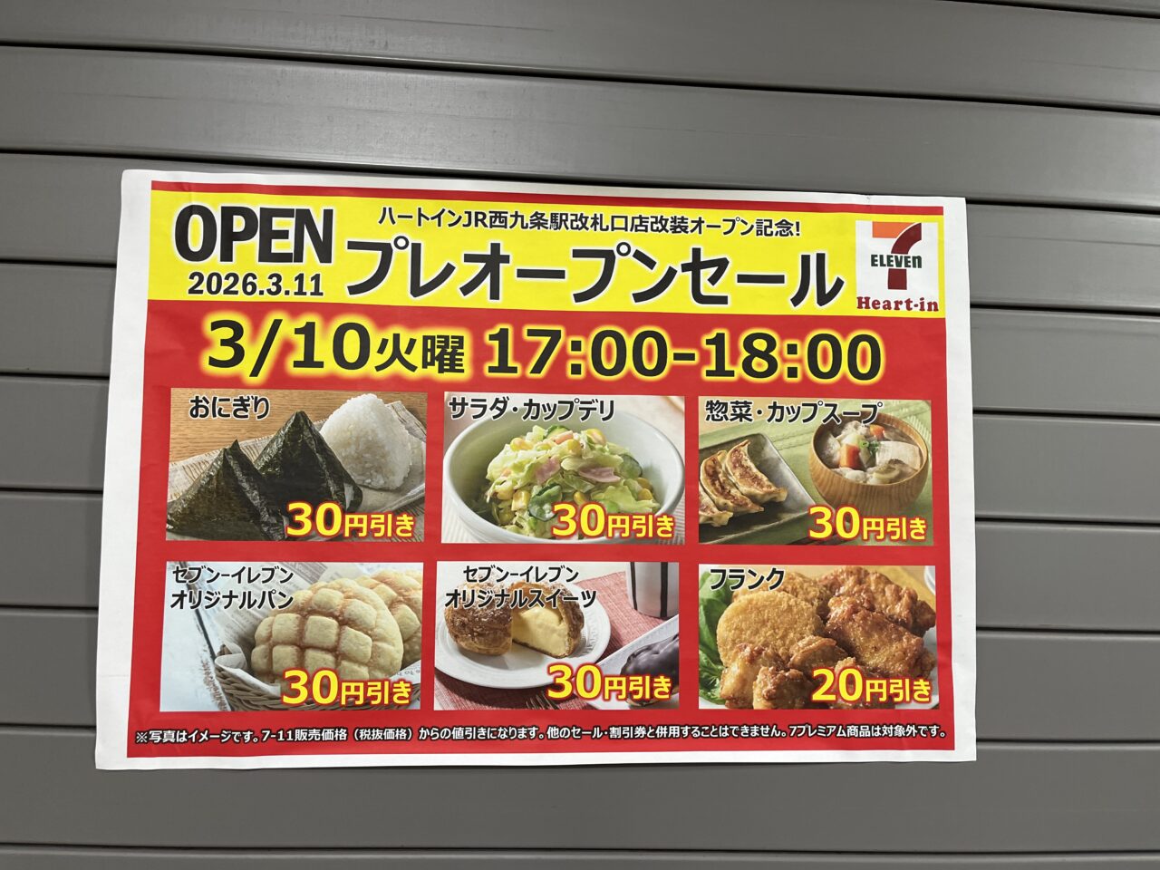 【大阪市此花区】1月から休業中の「セブンイレブンハートインJR西九条駅改札口店」が3月11日リニューアル!10日よりプレオープンセールも開始