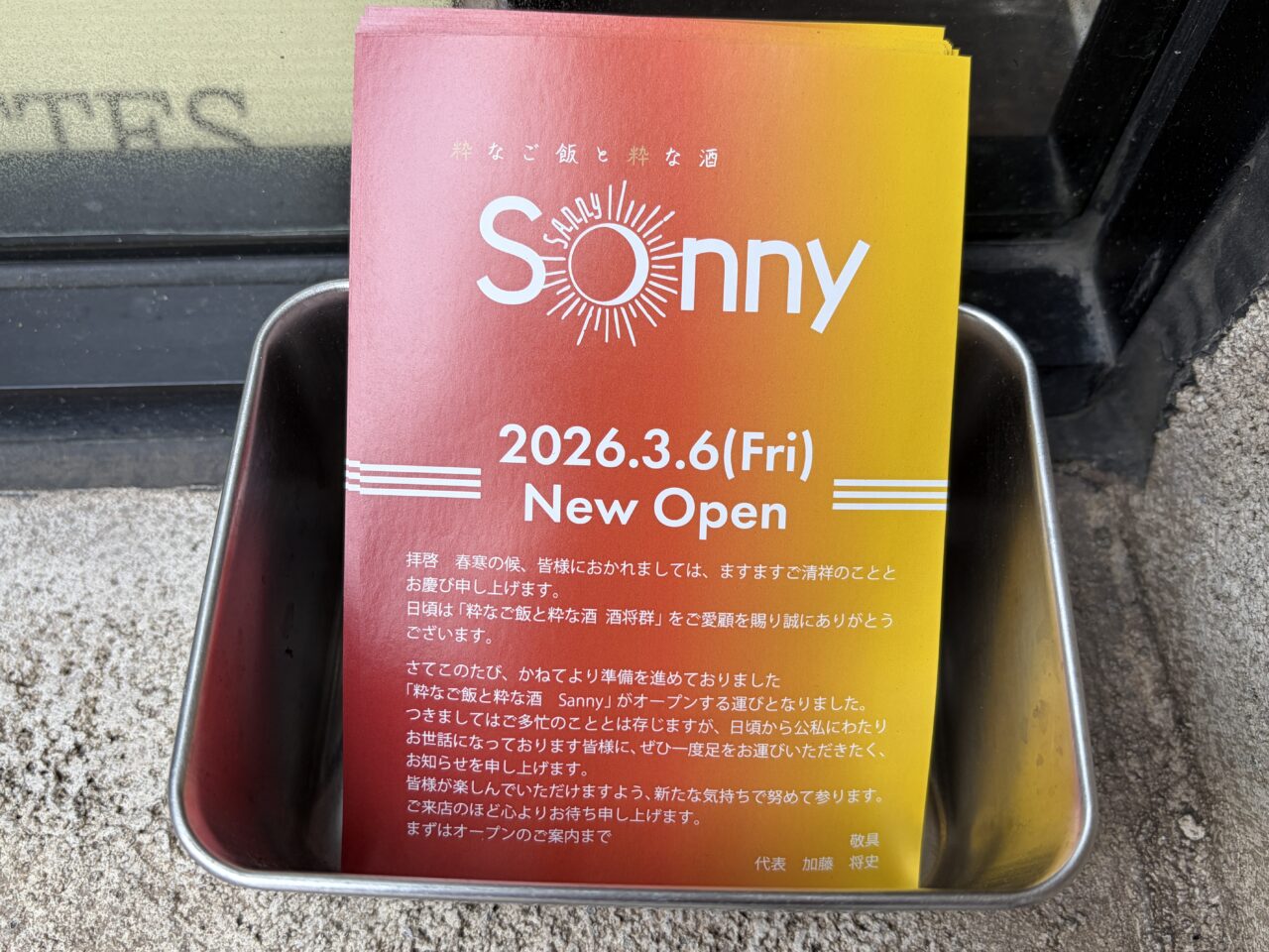 2026年3月6日(金)福島3丁目に創作鉄板飲食店「Sanny」がオープンしました。